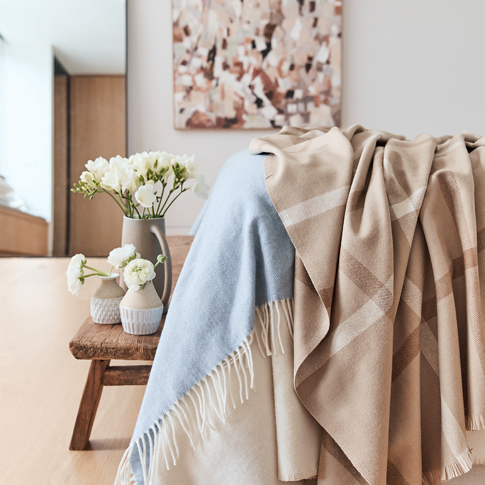 Behind every wool blanket lies a network of Australian families, farmers, skilled craftsmen and small businesses. Choosing Australian-made wool is a way to support regional economies and preserve rural ways of life; from the sheep farmers in the countryside to the spinners, weavers and retailers across the country, thousands of Australians rely on the wool industry for their livelihoods.