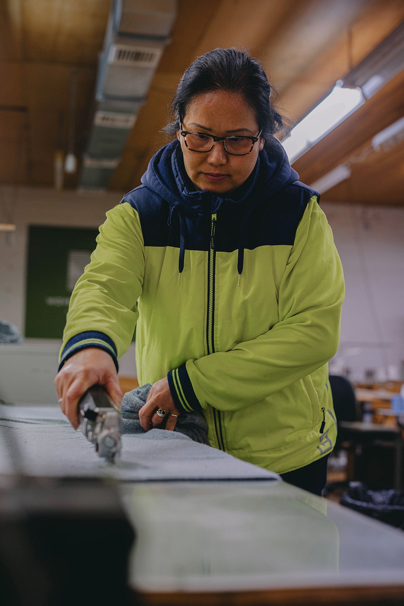 We are deeply committed to reducing waste and making the most of every fibre. That’s why we collect wool off-cuts and surplus material from our factory floor and collaborating with our partners to collect old or unused textiles, ensuring that nothing goes to waste. These fibres are sent through our ragger—a specialist machine that carefully breaks down woven and spun fabric, transforming it back into a raw, usable state, ready for a new life.