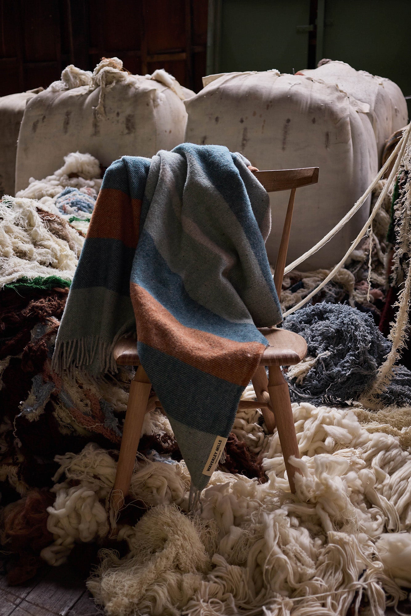 Once spun, the yarn is dyed where needed, before being woven into our signature recycled range. Every piece then undergoes a meticulous finishing process, including inspection, milling, raising, and final touches that enhance the texture and longevity of the fabric. The result is a stunning, high-quality recycled wool throw or blanket, ready to bring warmth, comfort, and sustainability into your home.