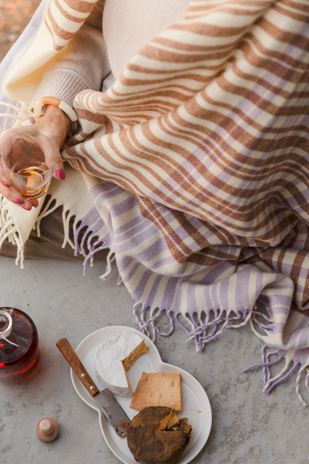 • Bask throw in lilac, caramel and natural undyed cream