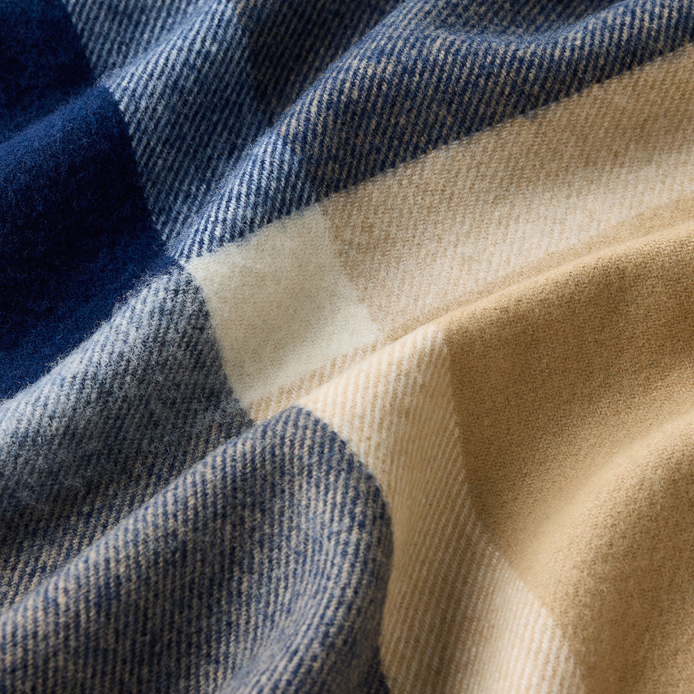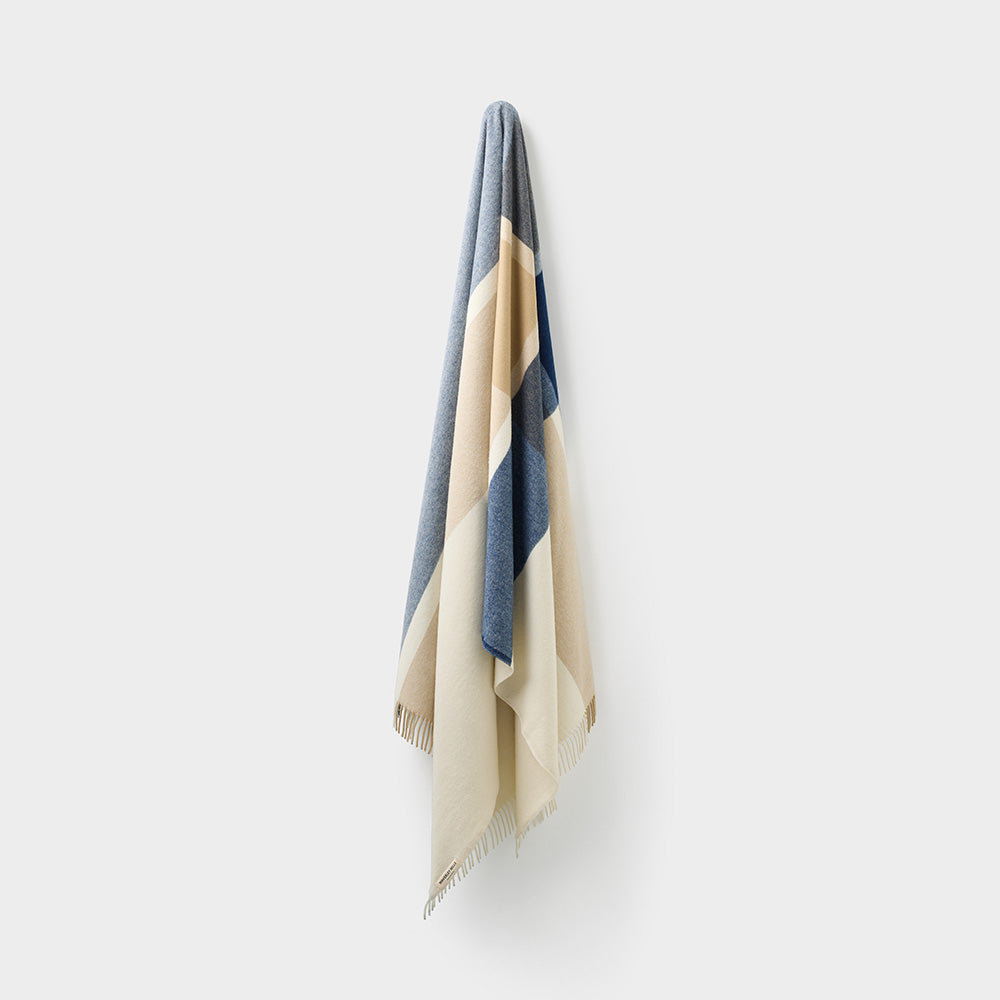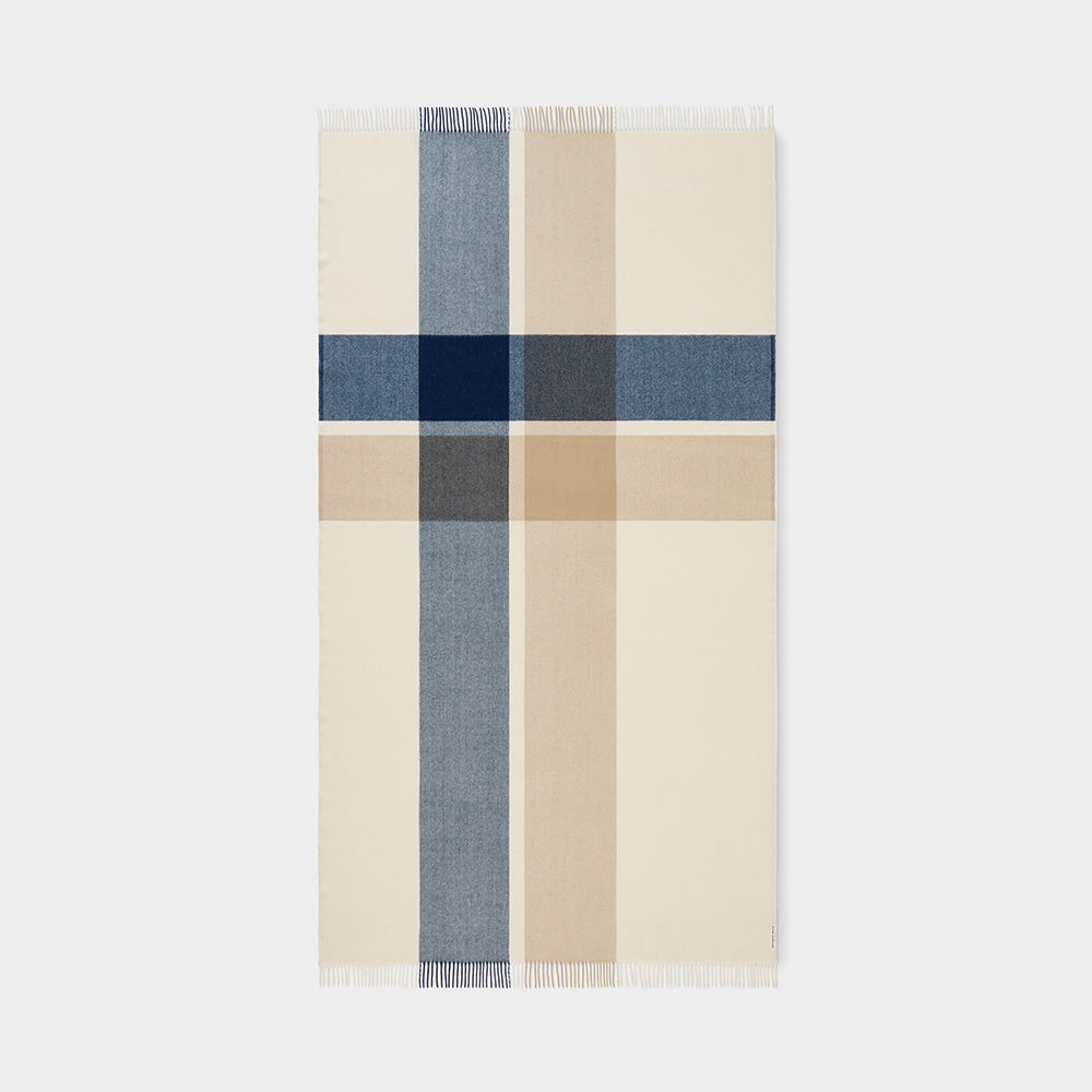 - Double Crossed throw in natural, navy and sand.