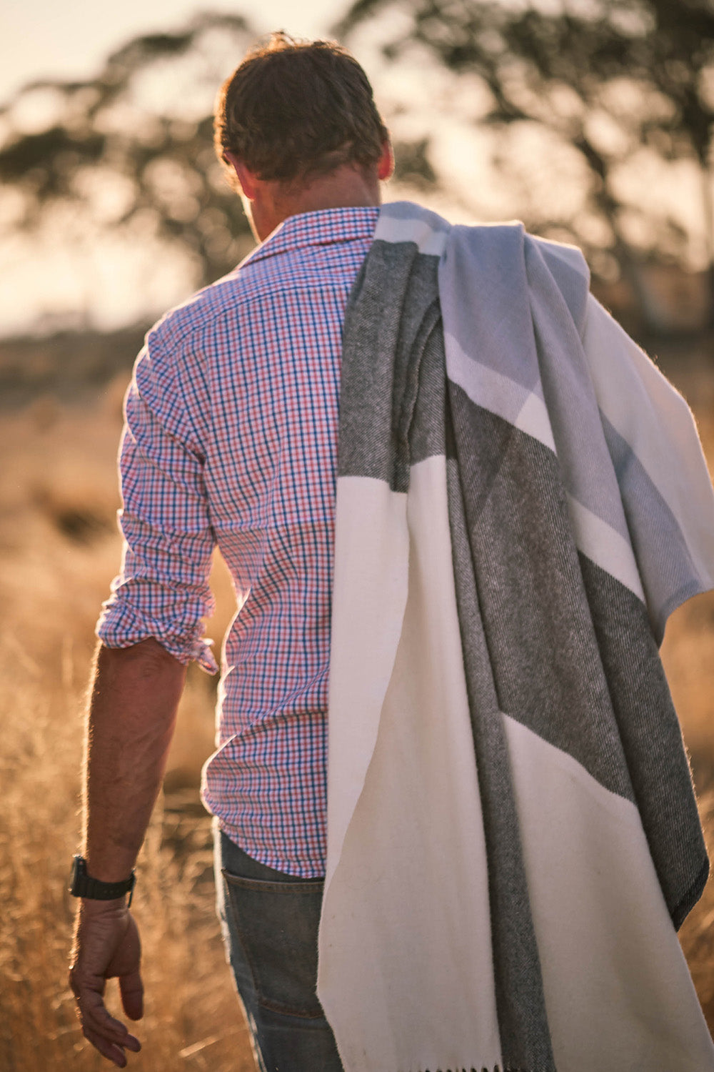 For generations, the Taylor family has dedicated themselves to producing the finest Tasmanian merino wool, carefully stewarding both their land and their flock. This year, their commitment to excellence becomes the foundation of our latest release—the oversized Double Crossed Throw.