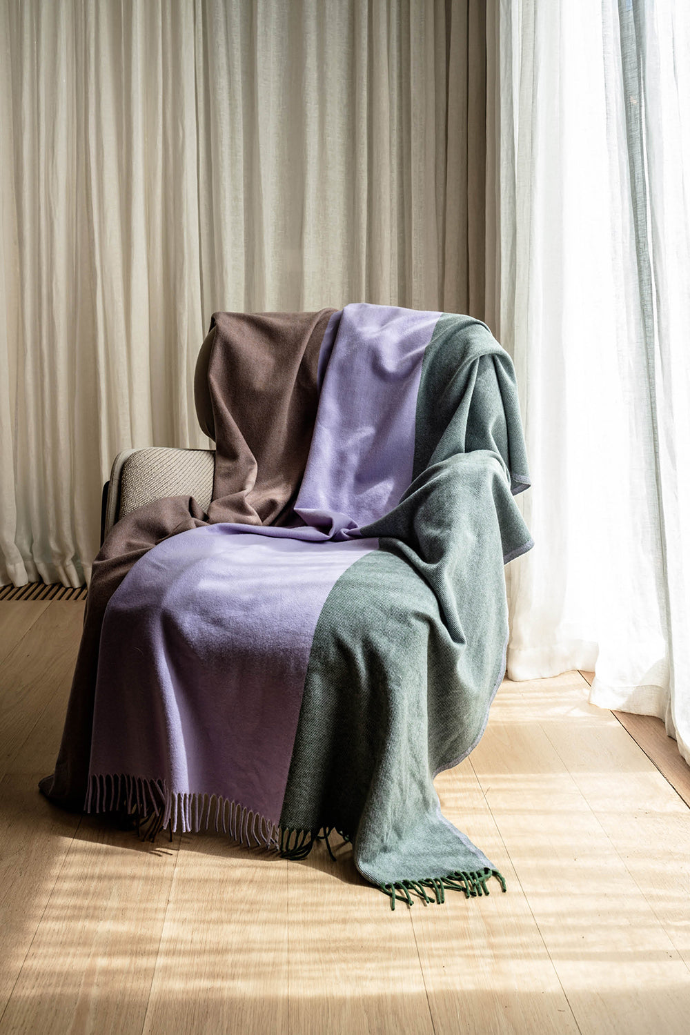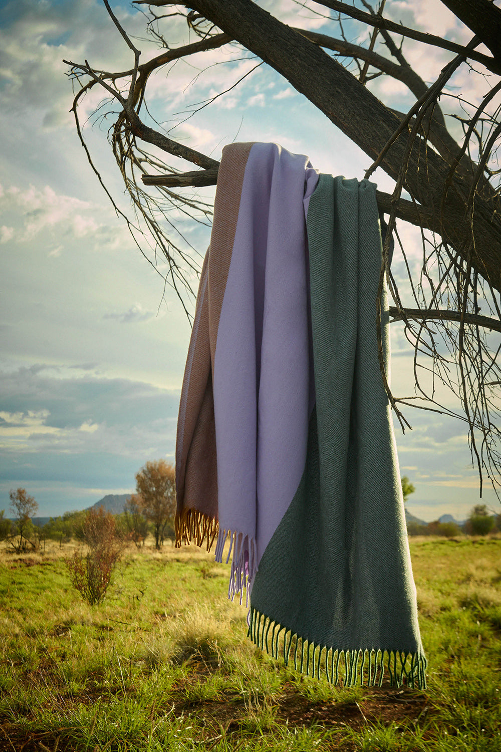 The Desert Field blanket collection is a collaboration between Fiona Lynch Office and Waverley Mills, Australia’s oldest working textile mill. The series captures the rich colours of the Larapinta Trail in Alice Springs, Australia, distilled into four distinctive palettes.