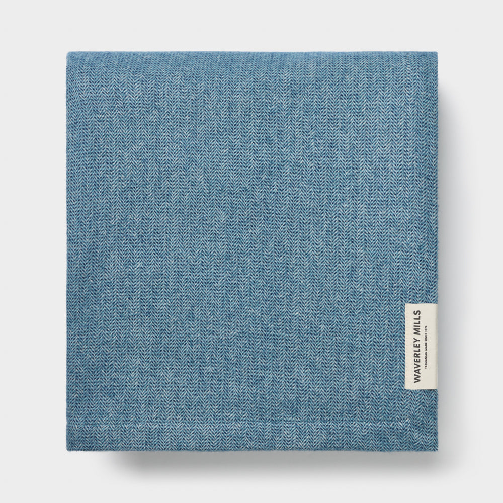 • Herringbone Weave Blanket in a mix of teal and navy